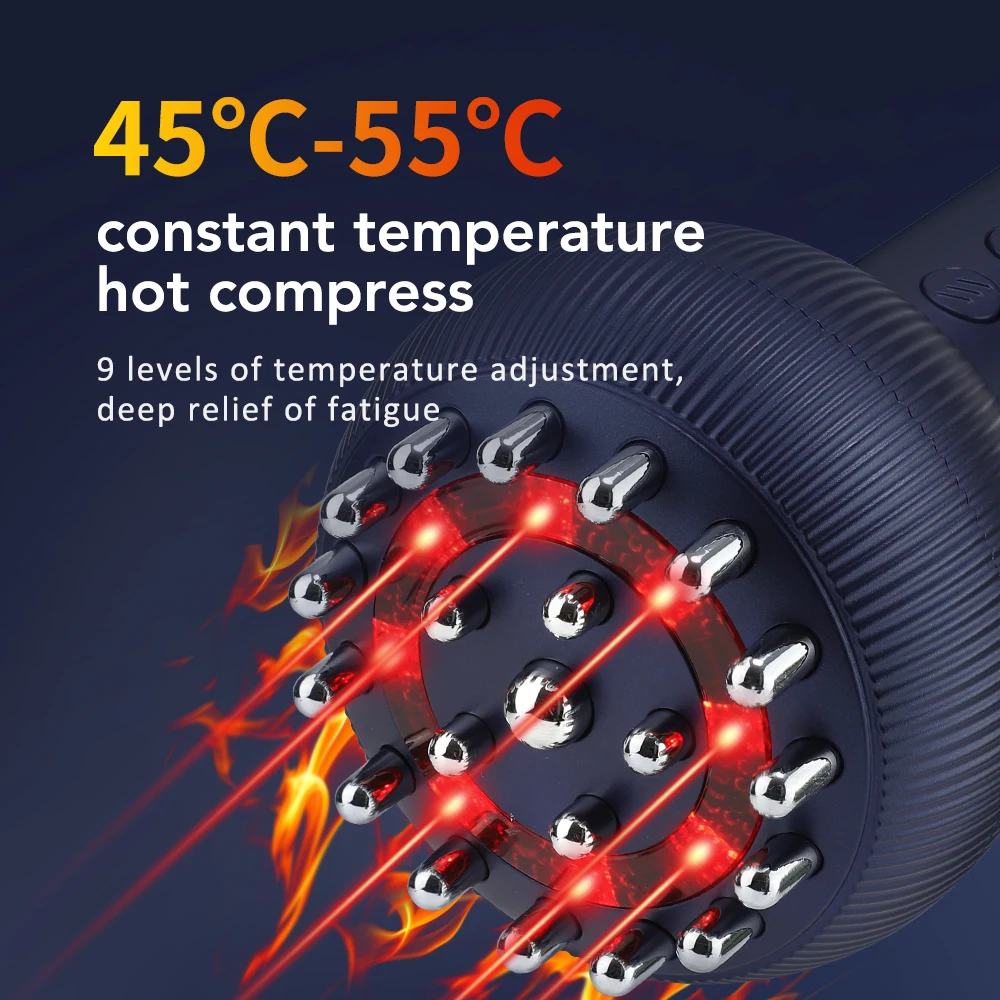 1.Nosso dispositivo de massagem inteligente integra funções de terapia de luz vermelha, massagem e compressa quente, desbloqueando efetivamente os meridianos e aliviando a fadiga física, proporcionando cuidados de saúde abrangentes.